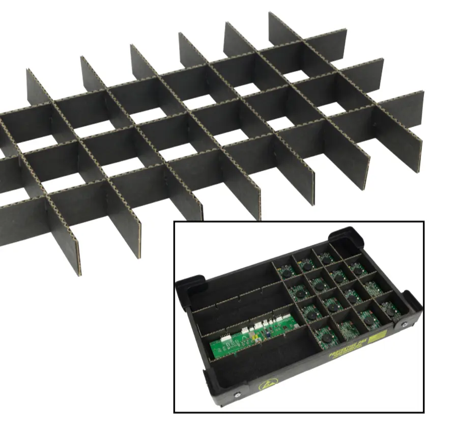 • Permanently static dissipative foam (shuntable) laminated to our impregnated corrugated material