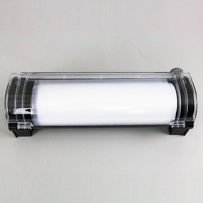 Create custom-sized vacuum bags with this 12” roll dispenser with a cutter. Store 12-inch wide rolls up to 50 feet long. Designed as a standalone bag cutter, or attached to KeepFresh-EC CounterMate Pro L12; two small latches on the roll dispenser slide into slots on the back of the sealer.