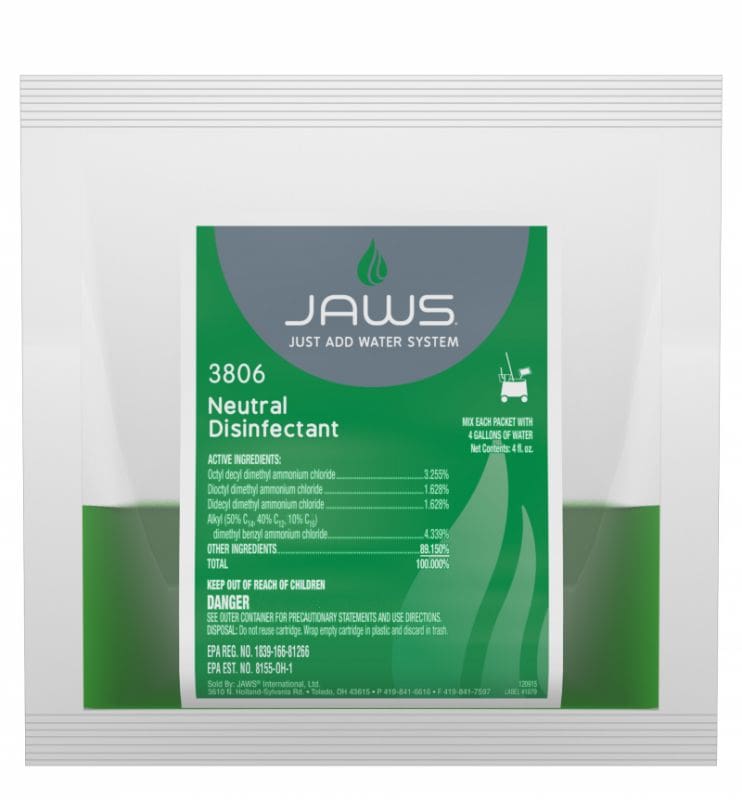 A concentrated, quaternary ammonium disinfectant cleaner that effectively cleans as it disinfects. This product is ideal for use on finished floors due to its neutral pH. Also inhibits growth of mold and mildew and controls related odors. One pouch yields 4 gal. of ready-to-use product. EPA registered as a Broad Spectrum disinfectant cleaning product.