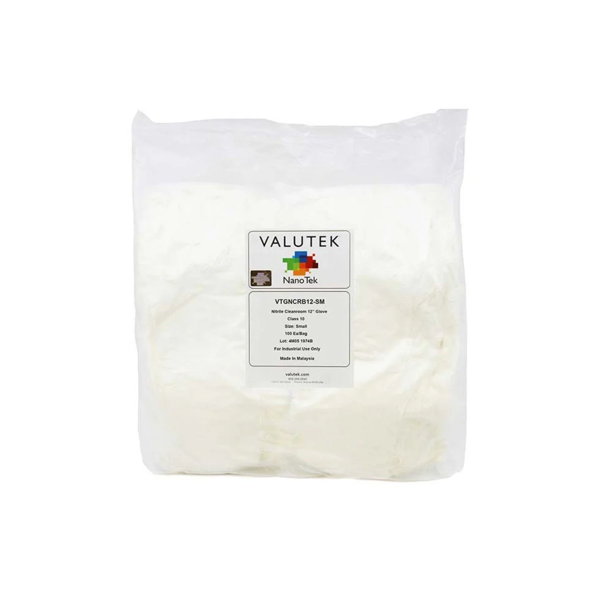 Valutek 12” ambidextrous nitrile powder-free cleanroom glove is constructed from 100% clean, synthetic nitrile polymer and contains no rubber latex.