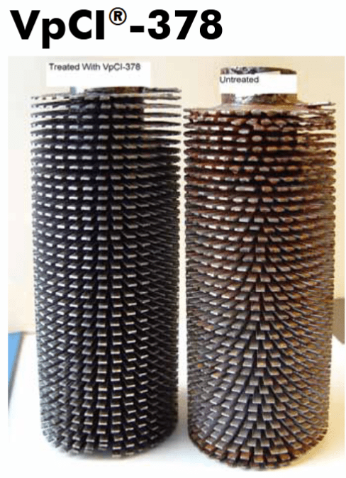VpCI®-378 is a water-based concentrate designed as a complete replacement for oil-based corrosion preventives. VpCI®-378 forms a brown emulsion in water and is applied to metal surfaces by spraying or dipping. The wide dilution range with water allows flexibility to customize the length of protection required vs. applied cost. The protective coating is also translucent and in ambient conditions becomes dry-to touch 30 minutes from application. VpCI®-378 is designed to be removed with Cortec® VpCI®-414 or other conventional alkaline cleaners.