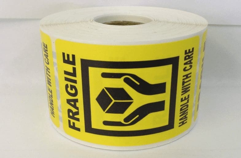LABEL, “HANDLE WITH CARE – FRAGILE, 4X6, 500/ROLL